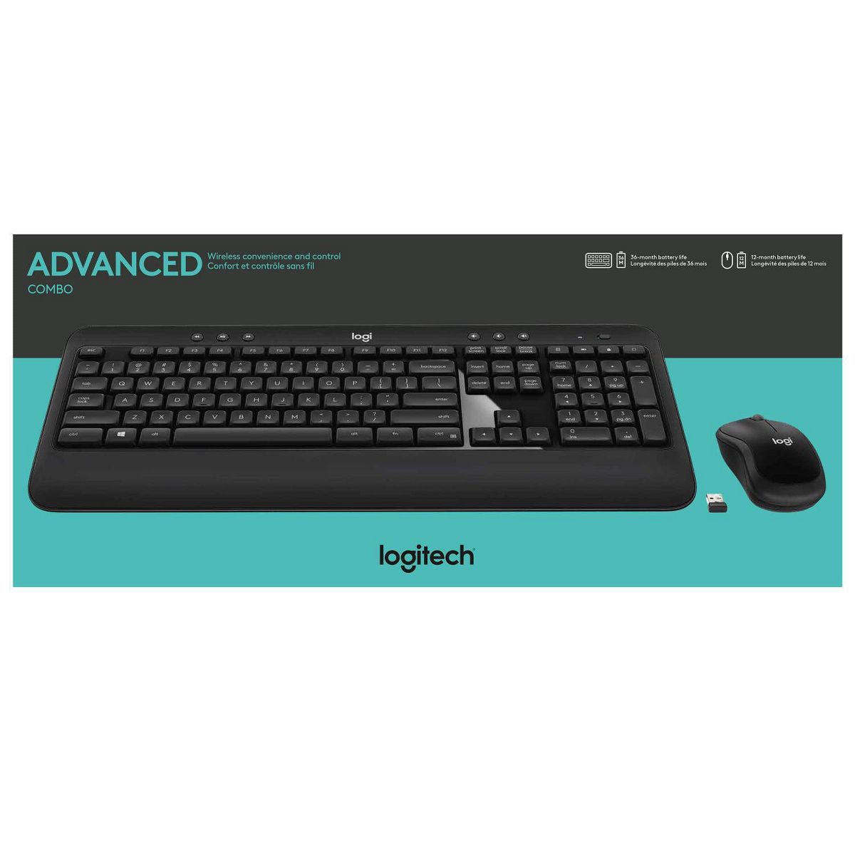 Advanced Combo is an instantly familiar wireless keyboard and mouse built for precision, comfort and reliability. The full-size keyboard features a familiar key shape, size, and feeling – optimized for precision and noise reduction.