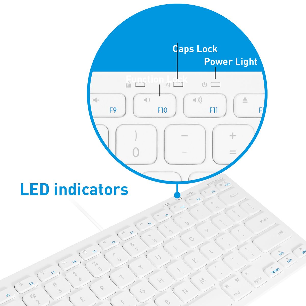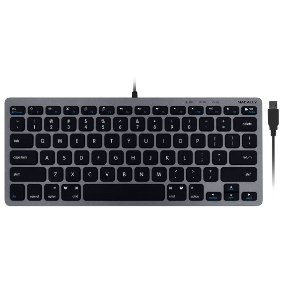 Macally USB Wired Compact Computer Keyboard is a 78 key compact USB keyboard that aims to provide an Apple-like typing experience that works for both Apple and PCs. You won't have to deal with a weak connection between your keyboard and the computer nor will you have to constantly change batteries. Low profile and provides a good smooth tactile feedback response that won't take up much desk space and more affordable than an Apple keyboard.