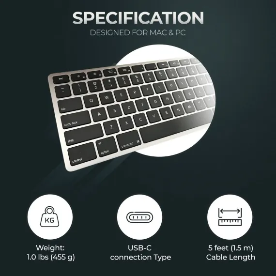 Matias FK316C Overview Designed for those who miss having a wired Apple keyboard, the space gray Matias USB-C Keyboard for Mac delivers the reliability of a traditional USB connection alongside the form and functionality that matches your computer. Built from plastic, this budget-friendly full-size keyboard is designed to reproduce the classic Apple keyboard feel with scissor switches and a 2mm key travel distance.