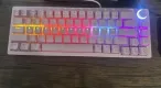 The North Base Mechanical Keyboard is stunning when lit up. It features four or five vibrant lighting modes with rainbow effects that make it visually pop. I think it's perfect for streamers or anyone who wants a stylish keyboard on camera. Despite the Windows-labeled keys, it works well with my Mac, and I appreciate the tactile volume knob, which also acts as a handy mute button with a tap. That said, there are a few downsides. First, it’s incredibly loud and clicky — which some people might love, but it’s not ideal for shared workspaces or quiet environments. People will hear you typing on video calls as your computer mic will pick up the sounds. More frustrating, though, is the fact that the box labels it a “compact wireless keyboard,” which simply isn’t true. It’s fully wired, and oddly uses a USB-A connector. This is not great in 2025 when many devices are USB-C only. I had to use an adapter just to plug it in. Still, for the price, the typing experience is satisfying, the lighting is soothing, and it supports media and brightness controls. Just be aware of the misleading packaging and the noise level. Personally, I’d recommend looking for a true wireless option, especially if portability or desk aesthetics matter to you.