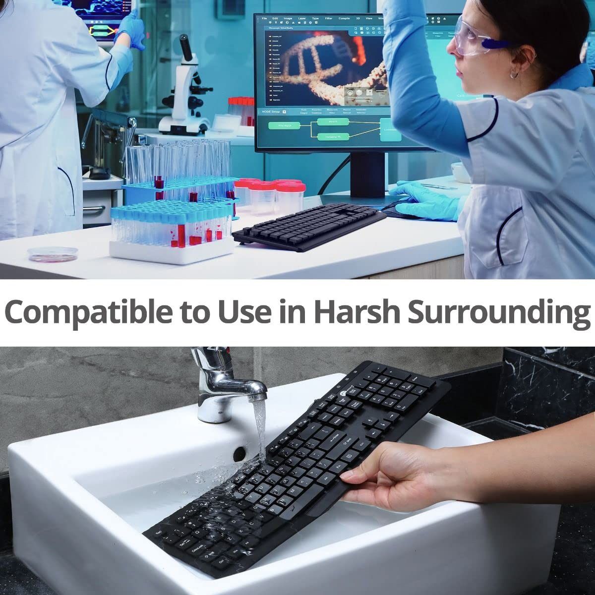 SIIG Industrial Grade Washable & Dustproof USB Multimedia Keyboard JKUS0U11S1