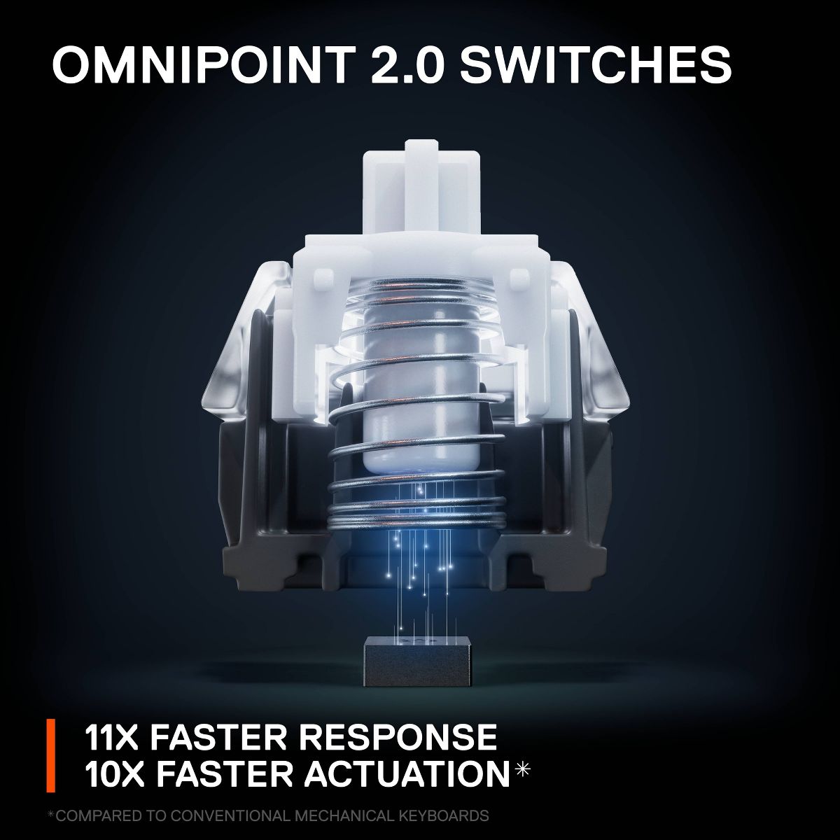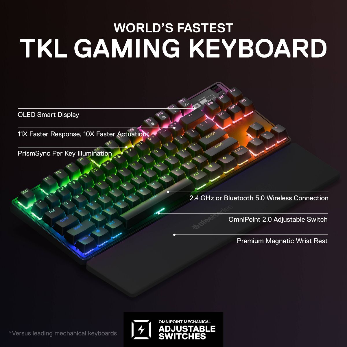 The Apex Pro TKL Wireless is the world's fastest keyboard with OmniPoint 2.0 switches for over 11x faster response and 10x quicker actuation. Adjust keystrokes to your desired registration depth, ranging from 0.2mm to 3.8mm, or combo two functions in one key while playing with a streamlined TKL keyboard.
