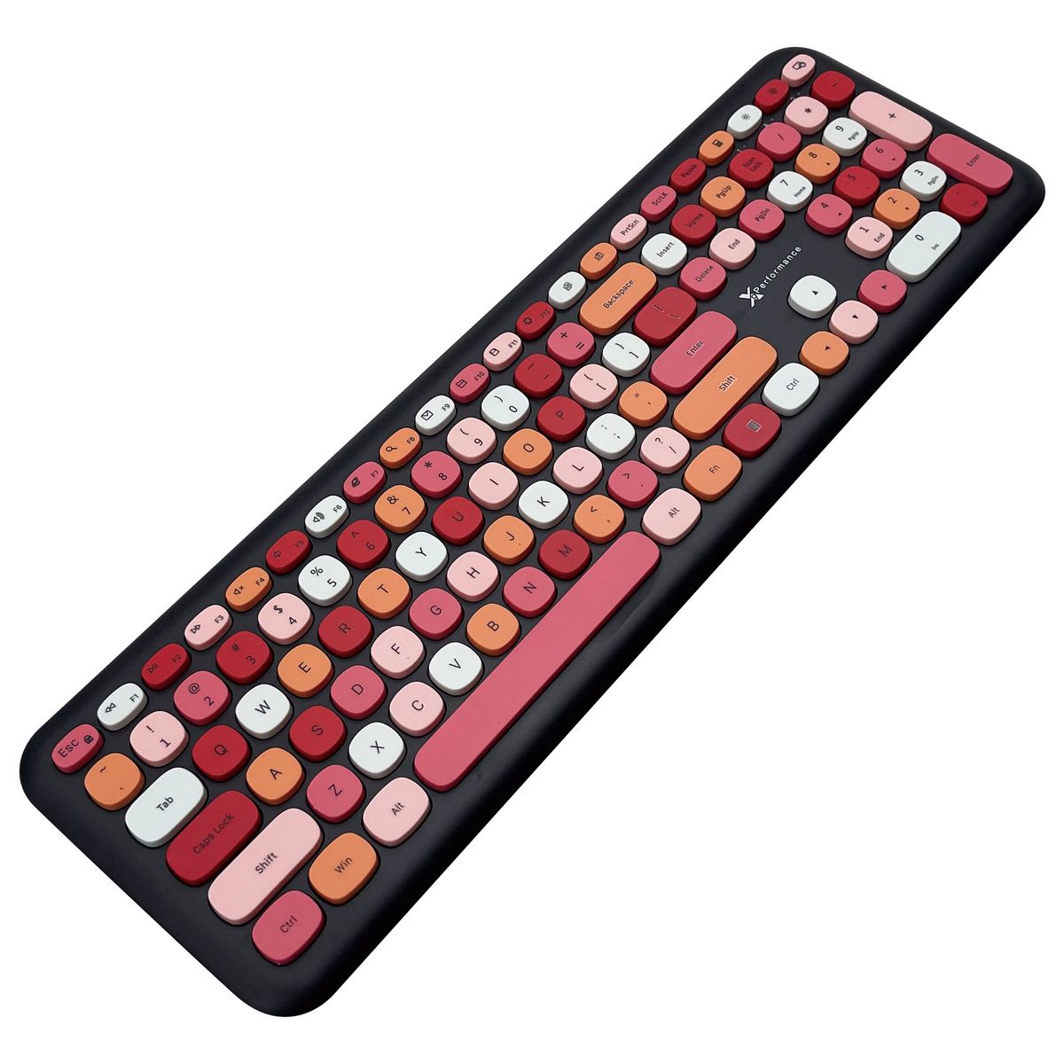 The X9 Performance X9RFCOLORCBB is 2.4GHz wireless RF colorful keyboard and mouse combo specially designed for PC. 110-key layout with a confident & dynamic design to provide a comfortable typing experience. 18 shortcut keys and numeric keypad further increase efficiency and productivity.