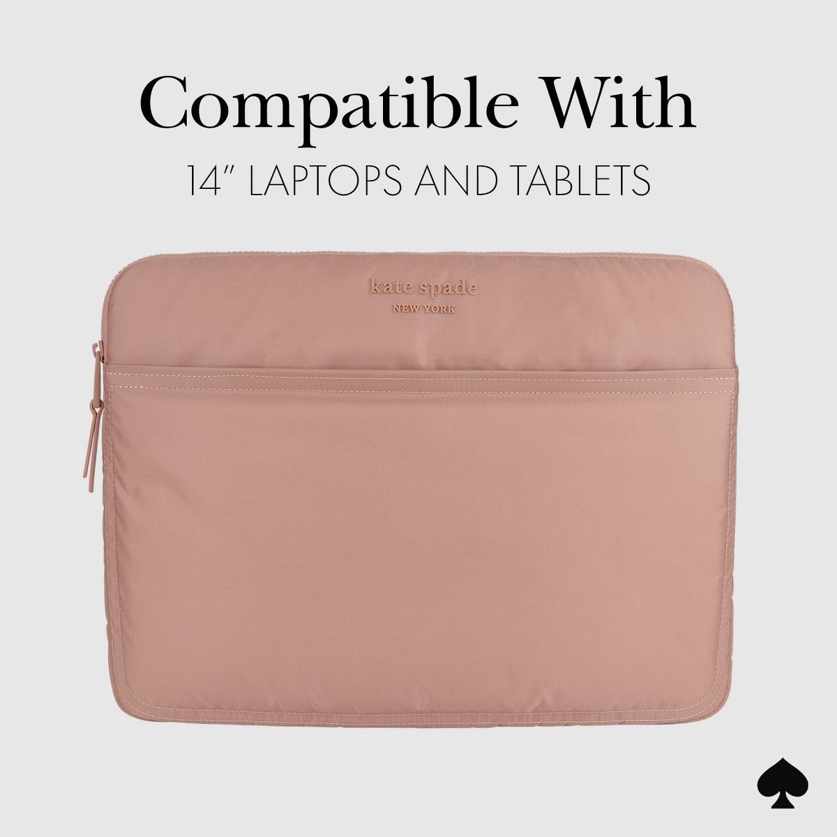 Who doesn’t love the comfort of a cozy puffer coat? Now, your laptop can experience the same level of protection with the Kate Spade New York Puffer Laptop Sleeve. This stylish sleeve features a plush interior lining and a padded outer pocket, safeguarding your device from bumps and scratches. The sleek design elevates your office look, reflecting the signature elegance of Kate Spade New York. Perfectly sized to fit both laptops and tablets, this versatile sleeve provides an extra layer of cushioning, with a luxurious micro-suede lining. The outer pocket offers convenient storage for accessories or documents, keeping you organized while on the go. Combining practicality with style, this chic accessory protects your tech and enhances your work essentials.