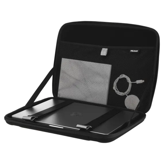 The Pelican Adventurer Laptop Sleeve offers reliable protection for your laptop with its durable clamshell design, allowing you to use your device directly from the case. Crafted from water-resistant materials, it ensures your laptop stays dry in various conditions. The sleeve features strong internal straps to securely hold your device in place, preventing any movement or damage.Pelican Products, Inc., a leader in mission-critical equipment protection, has been trusted by professionals worldwide since 1976. The same Pelican technology that has safeguarded military, emergency, and scientific equipment in extreme environments is now available to protect your mobile phones, tablets, and more.
