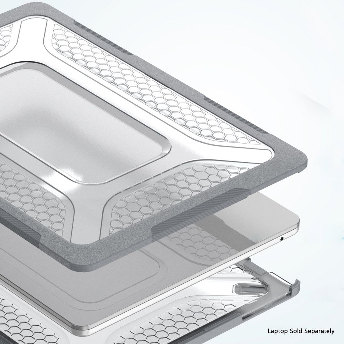 Defend your MacBook Air 15” (2024) with the SaharaCase Raider Ultra-Duty Series Case with Stand. Built from triple-hardened TPU and polycarbonate, this rugged shell provides protection against drops, scratches, and daily wear. A honeycomb-reinforced back panel enhances durability and diffuses impact while adding a sleek textured look. The built-in adjustable stand elevates your laptop for improved airflow and ergonomic typing. Slim and form-fitting, this case maintains portability while offering shock-absorbing corners and reliable all-around defense.