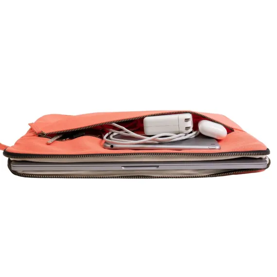 Your laptop is an investment—not only in dollars, but also in the human and earth capital that goes into its making. Protecting your tech and keeping it in use for as long as possible is an important way of reducing its impact on the planet. Made with 14-oz organic cotton canvas and lined with organic cotton fiber for padding and softness, our eco-friendly laptop sleeves are made to protect your machine from the jostling, dust and scratches of transport in a backpack or tote. Made with 14-oz Certified Fairtrade Organic cotton canvas. Made in a Fair Trade Certified™ factory. Note: This laptop sleeve can also hold a 16-inch MacBook Pro.