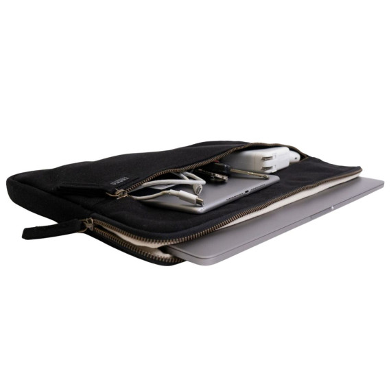Your laptop is an investment—not only in dollars, but also in the human and earth capital that goes into its making. Protecting your tech and keeping it in use for as long as possible is an important way of reducing its impact on the planet. Made with 14-oz organic cotton canvas and lined with organic cotton fiber for padding and softness, our eco-friendly laptop sleeves are made to protect your machine from the jostling, dust and scratches of transport in a backpack or tote. Made with 14-oz Certified Fairtrade Organic cotton canvas. Made in a Fair Trade Certified™ factory. Note: This laptop sleeve can also hold a 16-inch MacBook Pro.