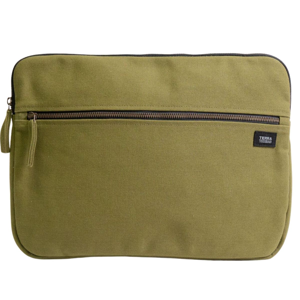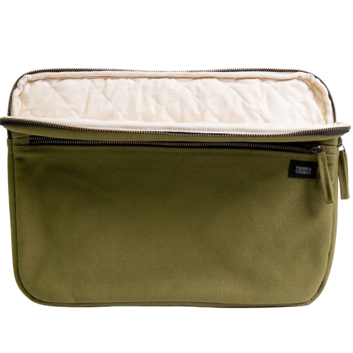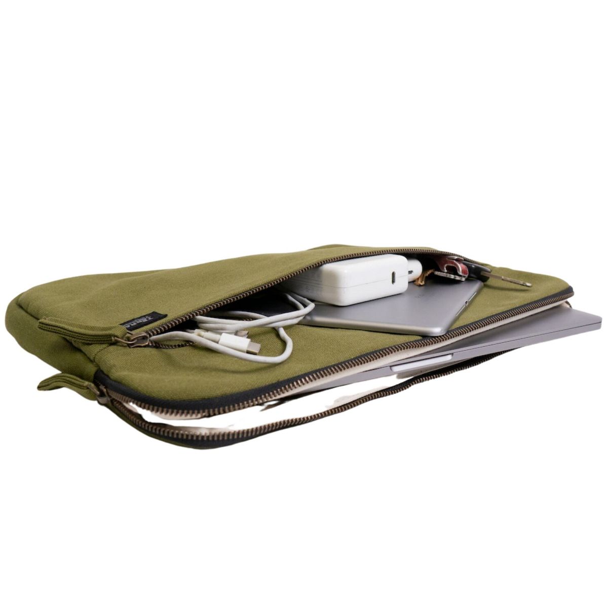Your laptop is an investment—not only in dollars, but also in the human and earth capital that goes into its making. Protecting your tech and keeping it in use for as long as possible is an important way of reducing its impact on the planet. Made with 14-oz organic cotton canvas and lined with organic cotton fiber for padding and softness, our eco-friendly laptop sleeves are made to protect your machine from the jostling, dust and scratches of transport in a backpack or tote. Made with 14-oz Certified Fairtrade Organic cotton canvas. Made in a Fair Trade Certified™ factory. Note: This laptop sleeve can also hold a 16-inch MacBook Pro.