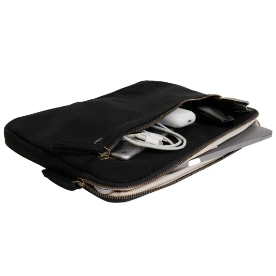 Protecting your tech and keeping it in use for as long as possible is an important way of reducing its impact on the planet. Made with heavy-duty organic cotton canvas and lined with organic cotton fiber for padding and softness, our eco-friendly laptop sleeves are made to protect your machine from the jostling, dust and scratches of transport in a backpack or tote. Made with 14-oz Certified Fairtrade Organic cotton canvas. Made in a Fair Trade Certified™ factory. Note: This laptop sleeve can also hold a 14-inch MacBook Pro