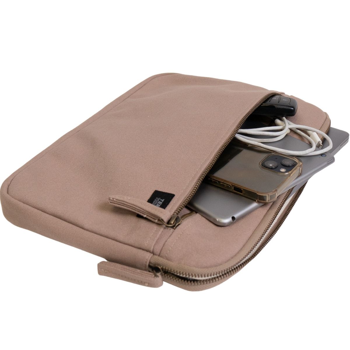 Protecting your tech and keeping it in use for as long as possible is an important way of reducing its impact on the planet. Made with heavy-duty organic cotton canvas and lined with organic cotton fiber for padding and softness, our eco-friendly laptop sleeves are made to protect your machine from the jostling, dust and scratches of transport in a backpack or tote. Made with 14-oz Certified Fairtrade Organic cotton canvas. Made in a Fair Trade Certified™ factory. Note: This laptop sleeve can also hold a 14-inch MacBook Pro