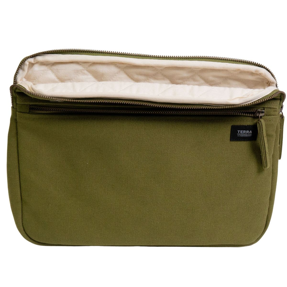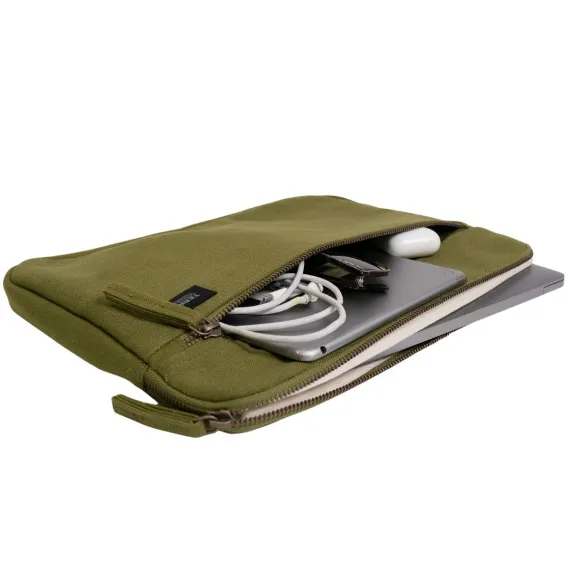 Protecting your tech and keeping it in use for as long as possible is an important way of reducing its impact on the planet. Made with heavy-duty organic cotton canvas and lined with organic cotton fiber for padding and softness, our eco-friendly laptop sleeves are made to protect your machine from the jostling, dust and scratches of transport in a backpack or tote. Made with 14-oz Certified Fairtrade Organic cotton canvas. Made in a Fair Trade Certified™ factory. Note: This laptop sleeve can also hold a 14-inch MacBook Pro