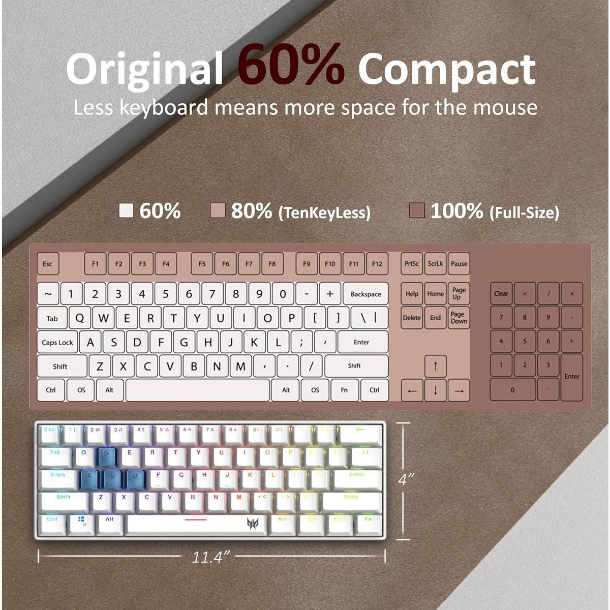 Acer Predator Aethon 330 61-Key Gaming Keyboard White w/ Kailh Blue Switches RGB Lighting N-Key Rollover Wired + Bluetooth Dual Mode - GP.KBD11.04A