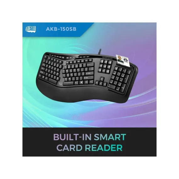 Adesso AKB-150SB-TAA Taa Compliant Usb Desktop Ergonomic Keyboard Built-in Smartcard Reader