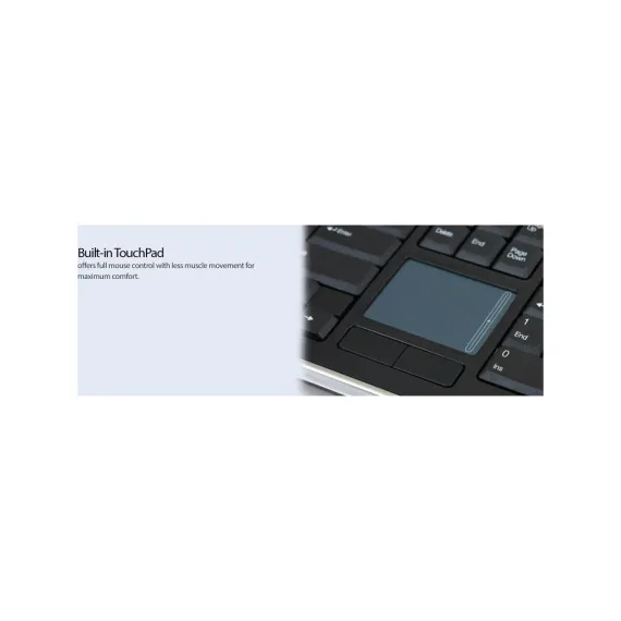 The WKB-4400UB offers a versatile and stylish solution for your typing needs. With its integrated touchpad and multimedia functions, this keyboard is designed for seamless control of your PC. Its elegant design complements any environment, making it suitable for home, office, or on-the-go setups. Compact and portable, it fits easily in a bag, ensuring you can take it wherever you need.