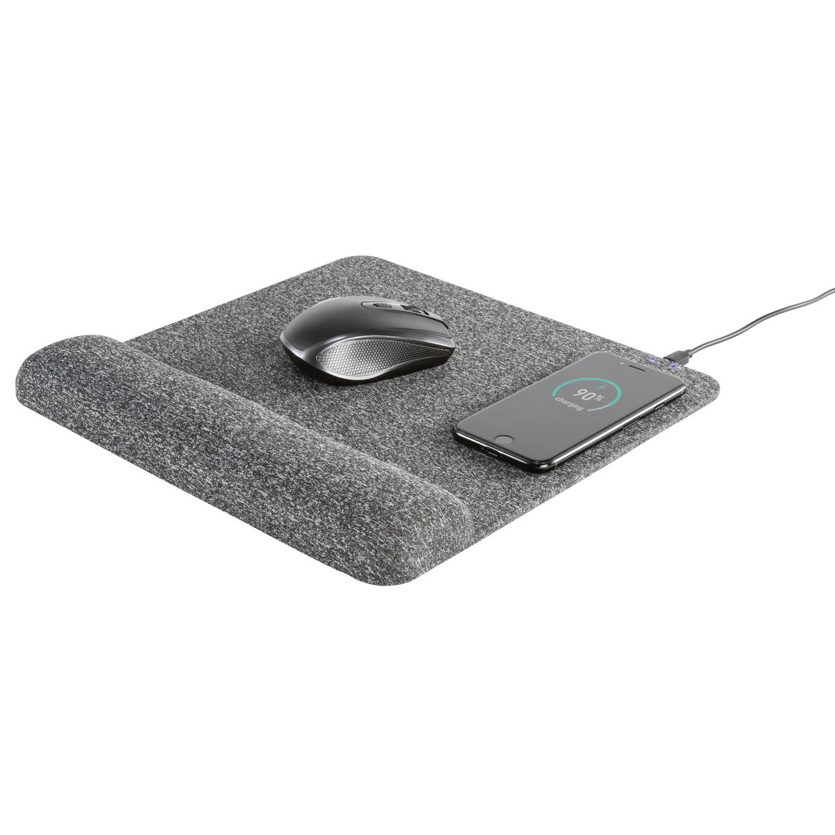 The Allsop PowerTrack Plush Wireless Charging Mousepad provides an easy and convenient way to charge your wireless devices with the added benefit of an accurate and comfortable mousing surface! The oversized 11.6 in. x 11.8 in. mousepad is covered in a responsive fabric and incorporates a multi-layer foam wrist rest to relieve wrist strain and provide ergonomic comfort. It allows you to charge your phone or other Qi-compatible device wirelessly at your desk. Simply place the device on the wireless charging area to begin charging._