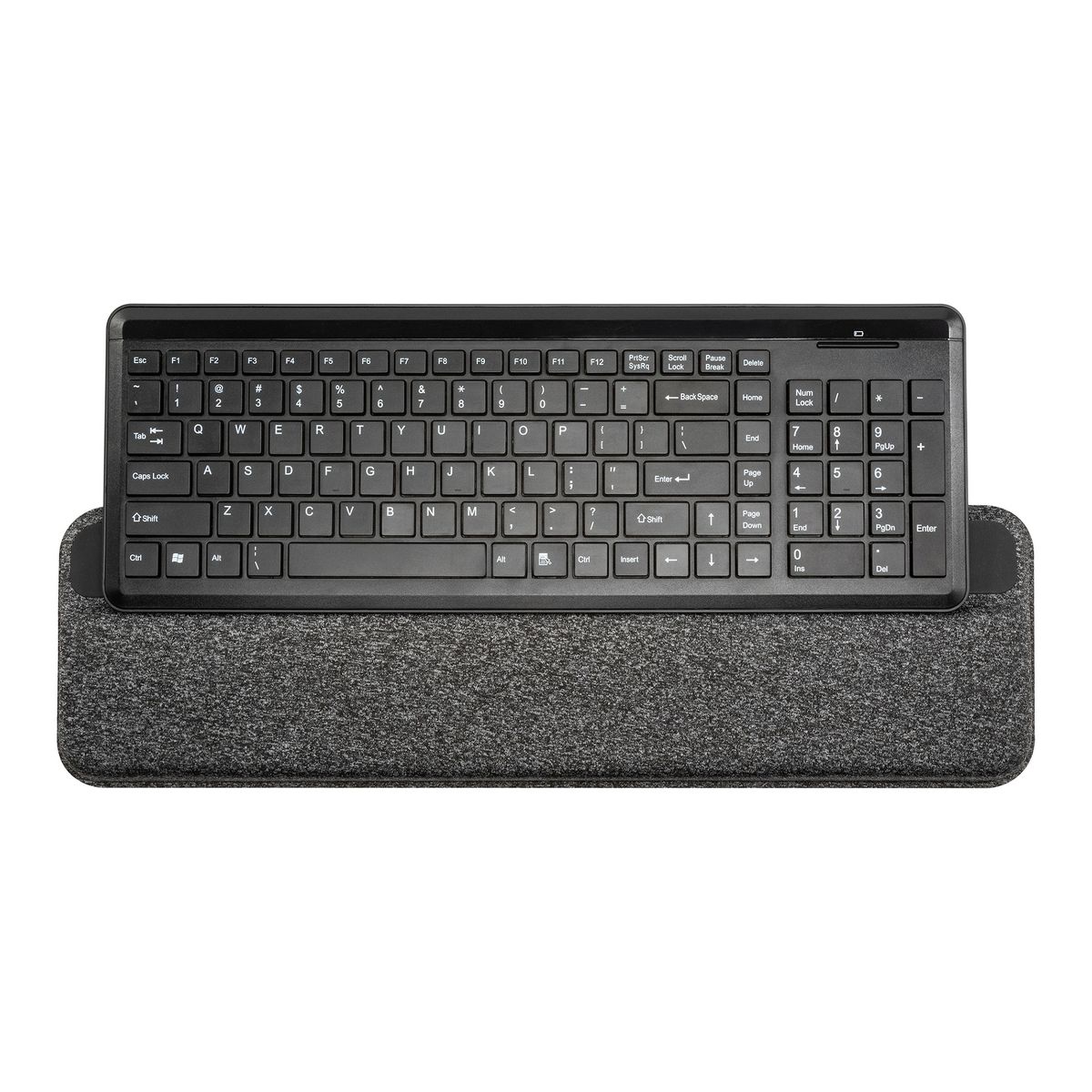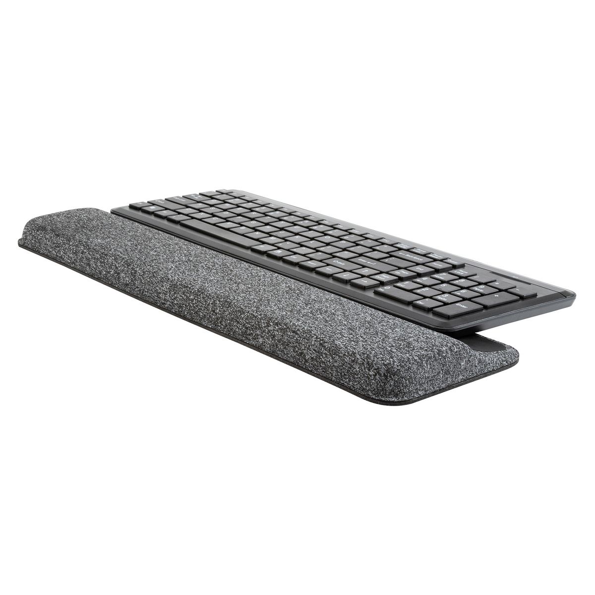 Designed with ergonomics in mind, the Premium Plush Angled Keyboard Wrist Rest from Allsop® supports your wrists in a neutral position, helping to reduce strain and fatigue during work. Its gentle negative tilt promotes better wrist alignment, easing pressure on your wrists and hands. The foam cushioning provides consistent comfort, minimizing pressure during extended typing sessions. The soft fabric covering prevents irritation while offering a smooth surface for everyday use. A non-slip base ensures the wrist rest remains stable, even during intense typing or gaming. Pair it with the Premium Plush Angled Mousepad (sold separately) to create a complete ergonomic setup for improved comfort and productivity.
