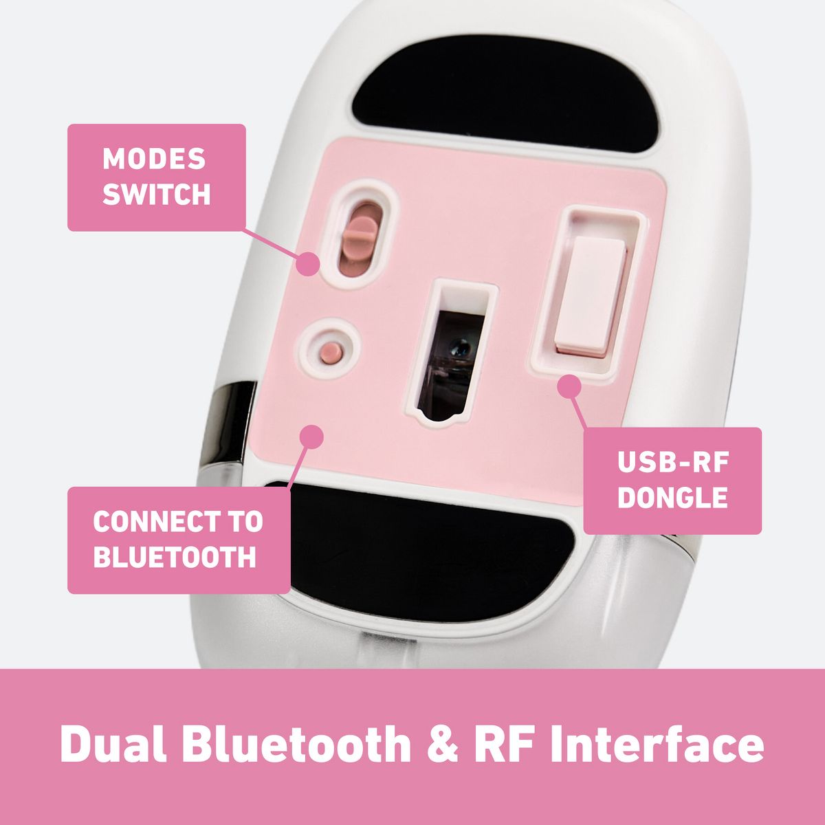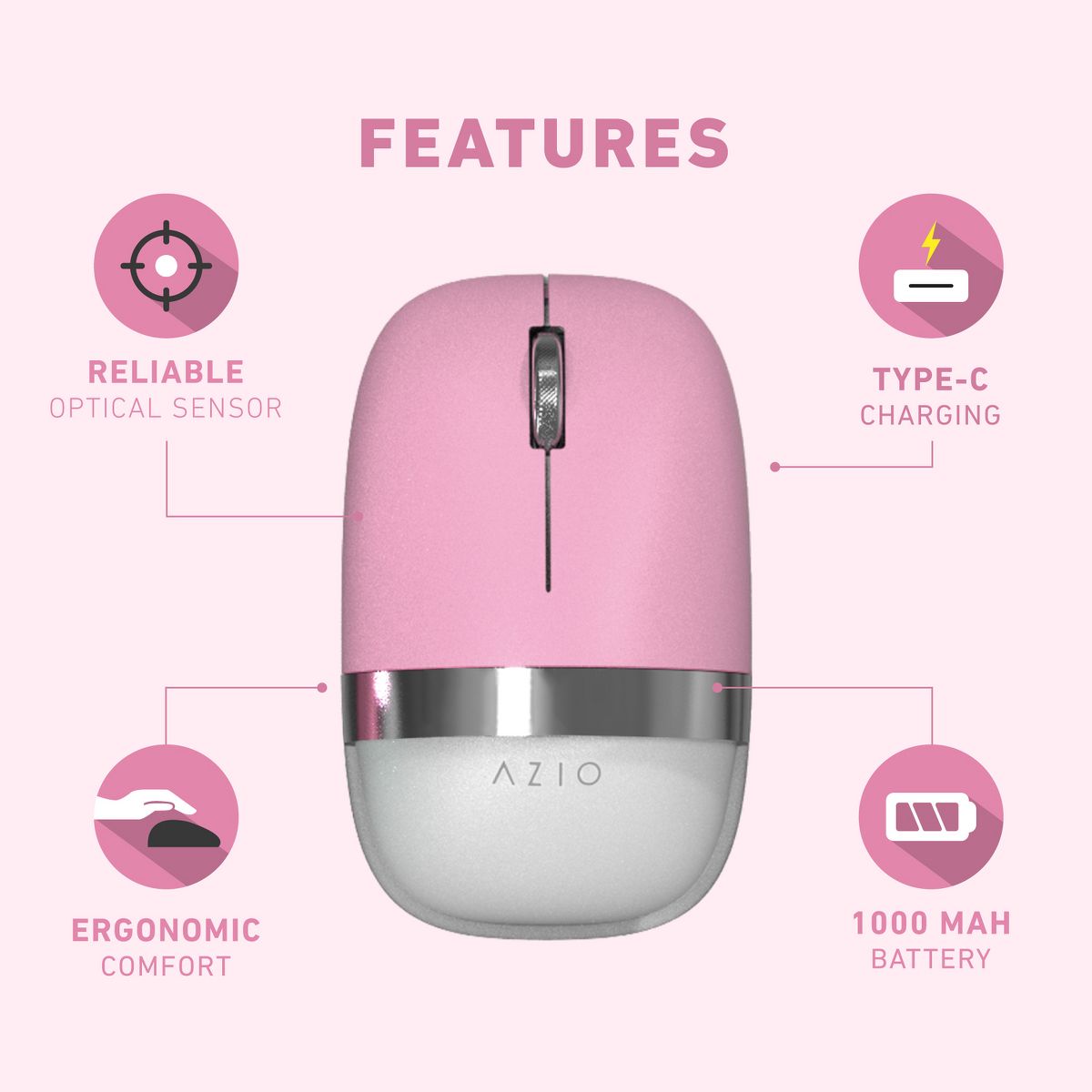 Azio IZO Cordless Optical Computer Mouse, Ergonomic, 3 Buttons, Bluetooth® 3.0/5.0 and 2.4G RF-USB (White Blossom)