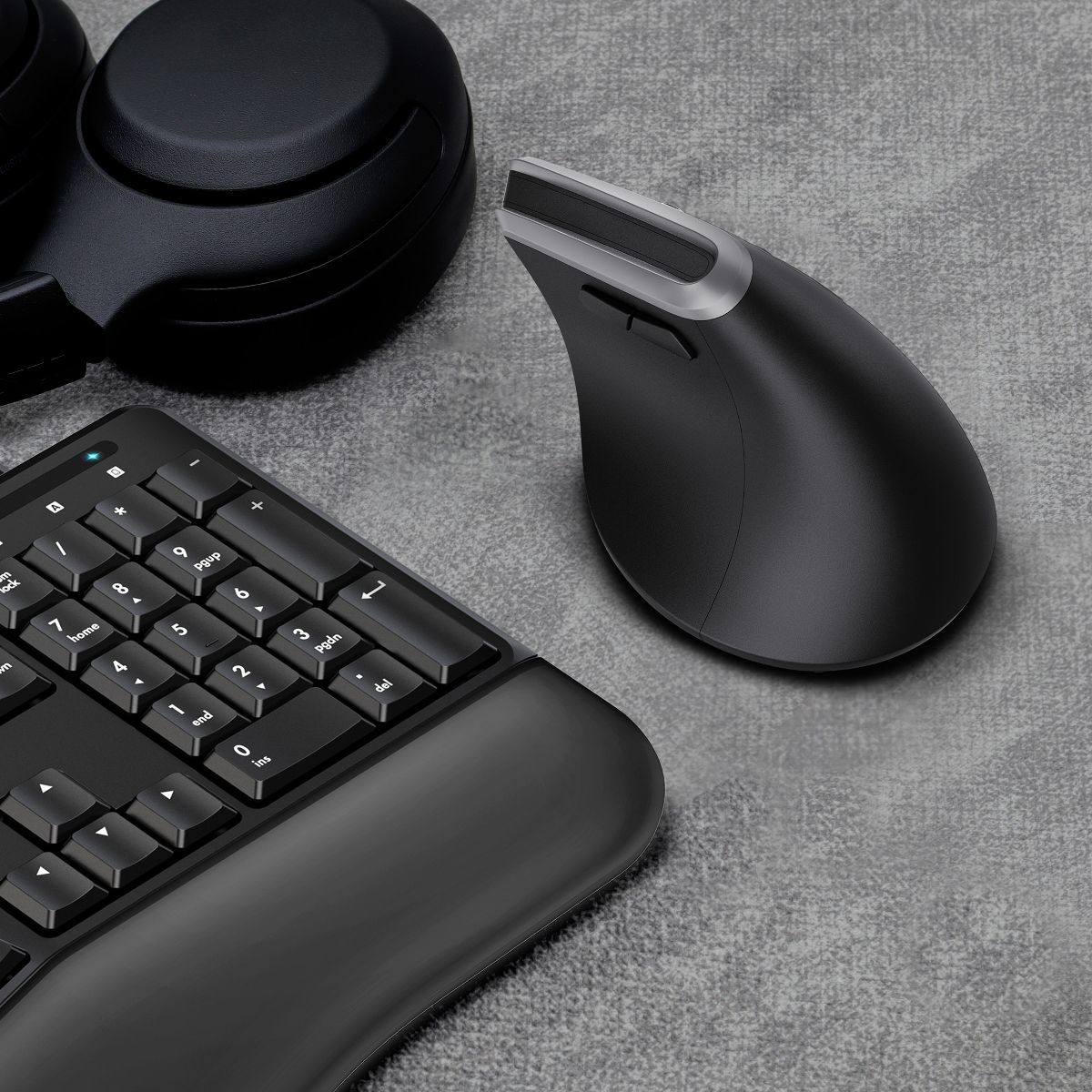 Elevate your typing and navigating experience with Delton ergonomically designed usb keyboard and mouse set. The wireless keyboard is crafted for comfort and recommended by rheumatologists, featuring a pillowed wrist rest to improve typing posture and reduce wrist strain during long sessions. It also has 2.4GHz connectivity, full-sized 104 key layouts, and smooth curvature keys. Our wireless mouse equipped with an optical sensor for precise tracking, offers a wrist-friendly design with 3 DPI levels, a smooth scroll wheel, and seamless navigation across multiple devices with Bluetooth and 2.4GHz USB-A and USB-C connectivity. Both the wireless ergonomic keyboard and mouse boast long battery life, noiseless buttons for quiet operation, and automatic sleep mode to conserve energy, making this combo ideal for continuous productivity at office or in the home.