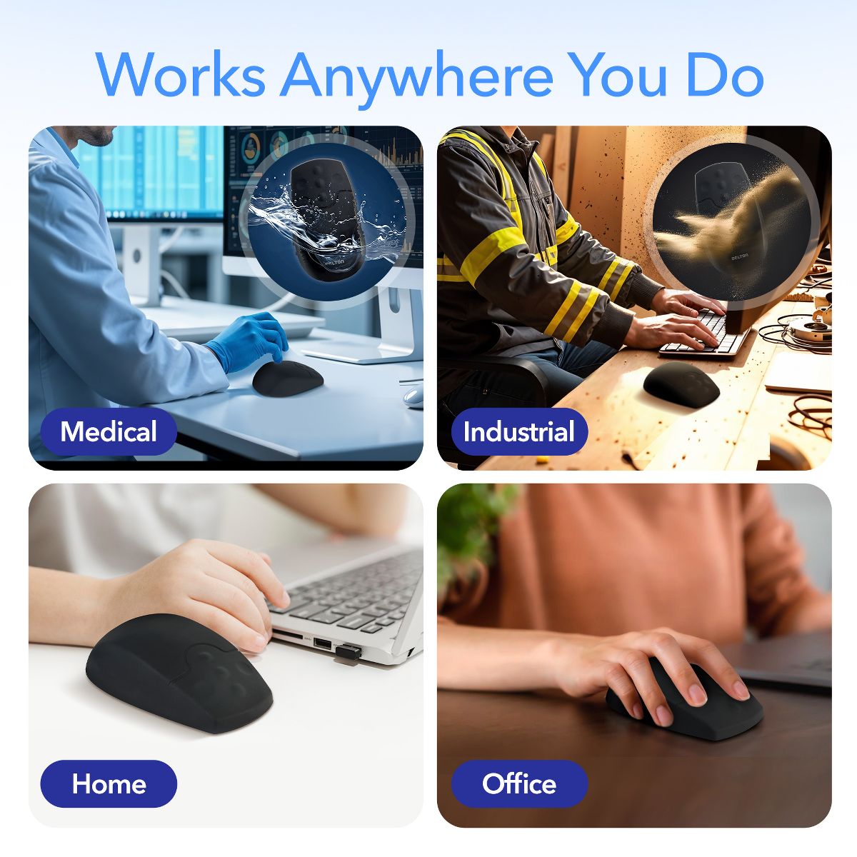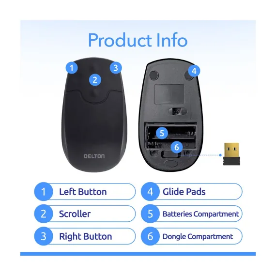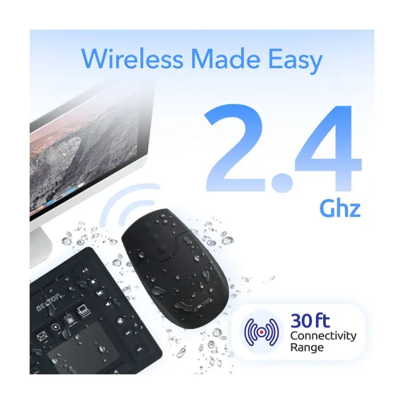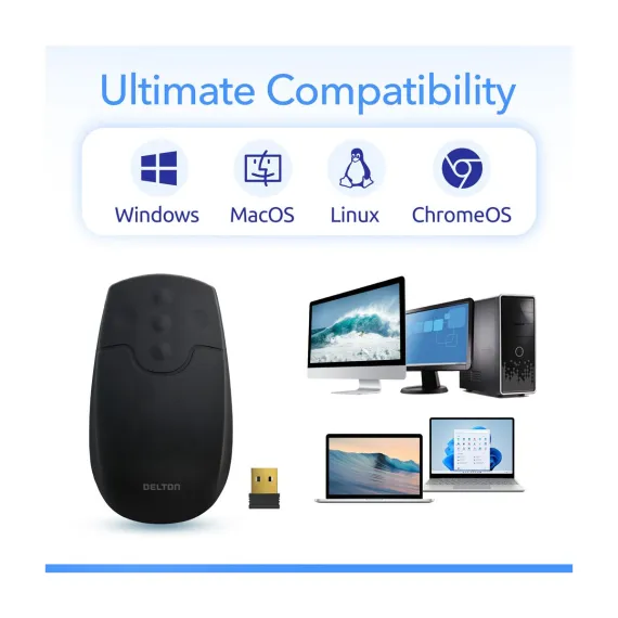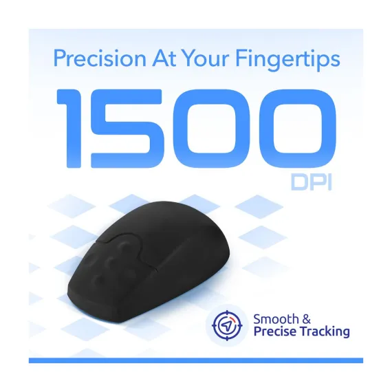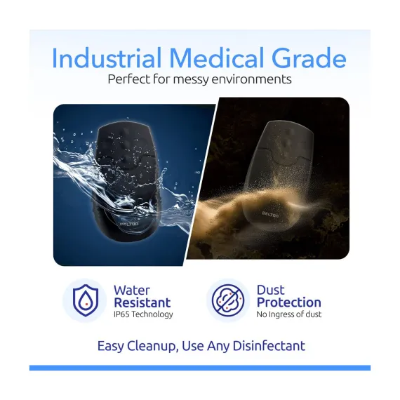 Upgrade your workflow with the Delton M44 quiet mouse, combining precision, comfort, and versatility in one sleek design. Powered by 2.4 GHz Digital RF technology, this USB mouse delivers reliable wireless performance with a range of up to 10 meters for seamless operation. The advanced 1500 DPI laser sensor of our wireless mouse for PC ensures smooth and accurate cursor movement, perfect for detailed tasks and everyday use. This waterproof mouse has an IP65 rating making it washable. Our USB wireless mouse rubberized silicone surface provides durability and comfort, even during extended use. With plug and use setup, a compact nano USB receiver for easy portability, and compatibility across multiple devices and operating systems, this lightweight mouse with dimensions of 4.48 x 2.55 x 1.7 inches is ideal for home, office, or industrial environments, making it a versatile choice for all your computing needs.