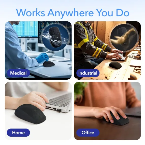 Delton M44 Medical Grade Airtight Waterproof Silicone Wireless Computer Mouse, Black