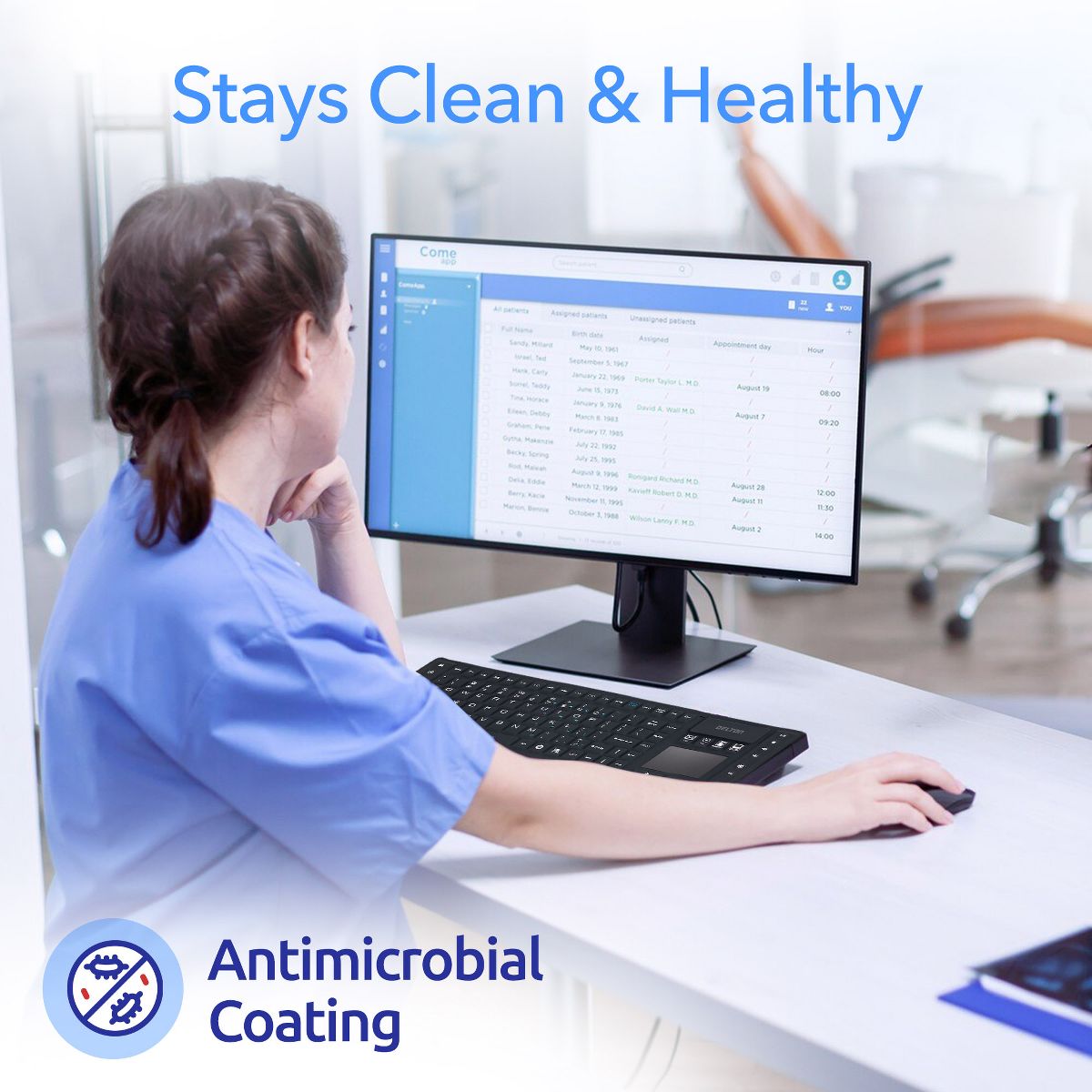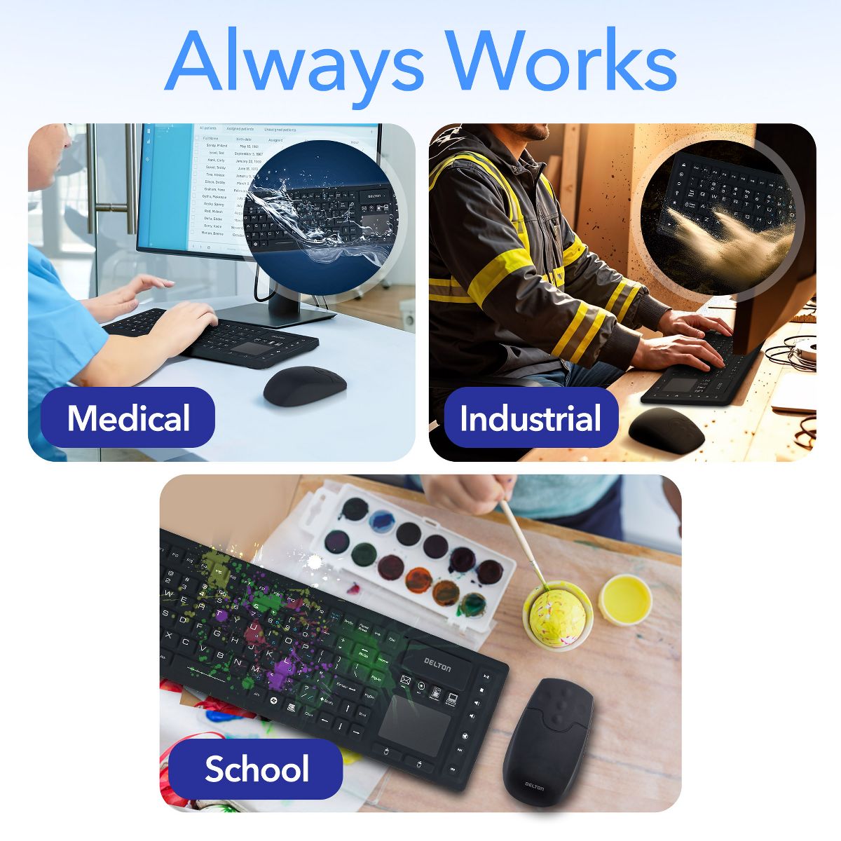 Delton M90/M44 Medical Grade Airtight Waterproof Wireless Computer Keyboard & Mouse, Black