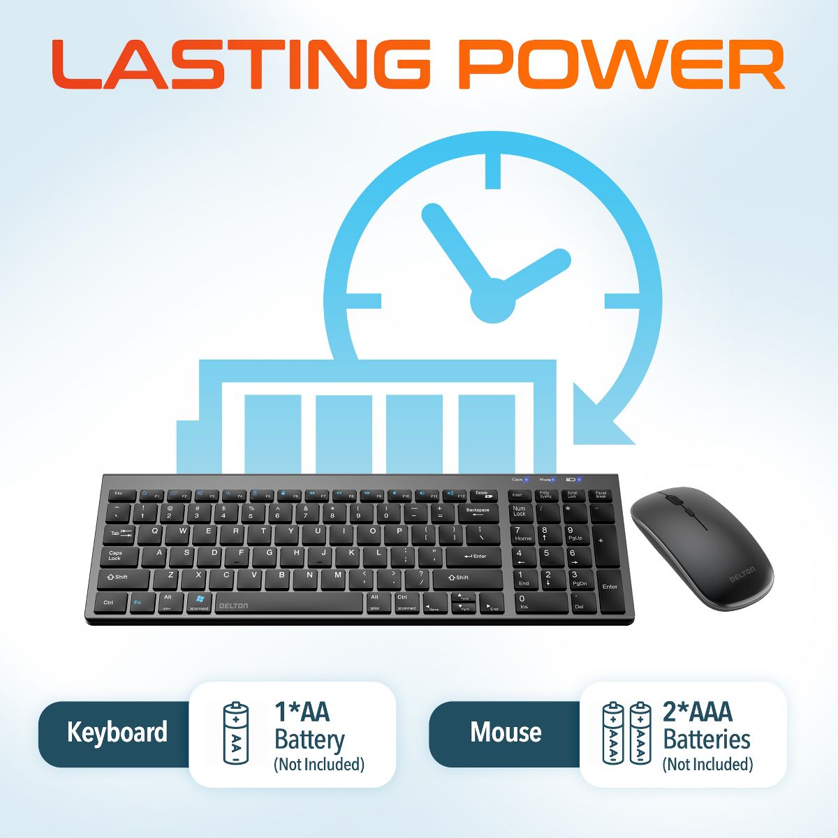 Delton N36 Slim Wireless Keyboard and Optical Mouse Combo, Black