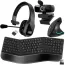 Delton Work Anywhere 20X Wireless Noise Canceling Bluetooth Computer Headset Kit with 1080p Webcam, Ergonomic Wireless Keyboard & Mouse, Black