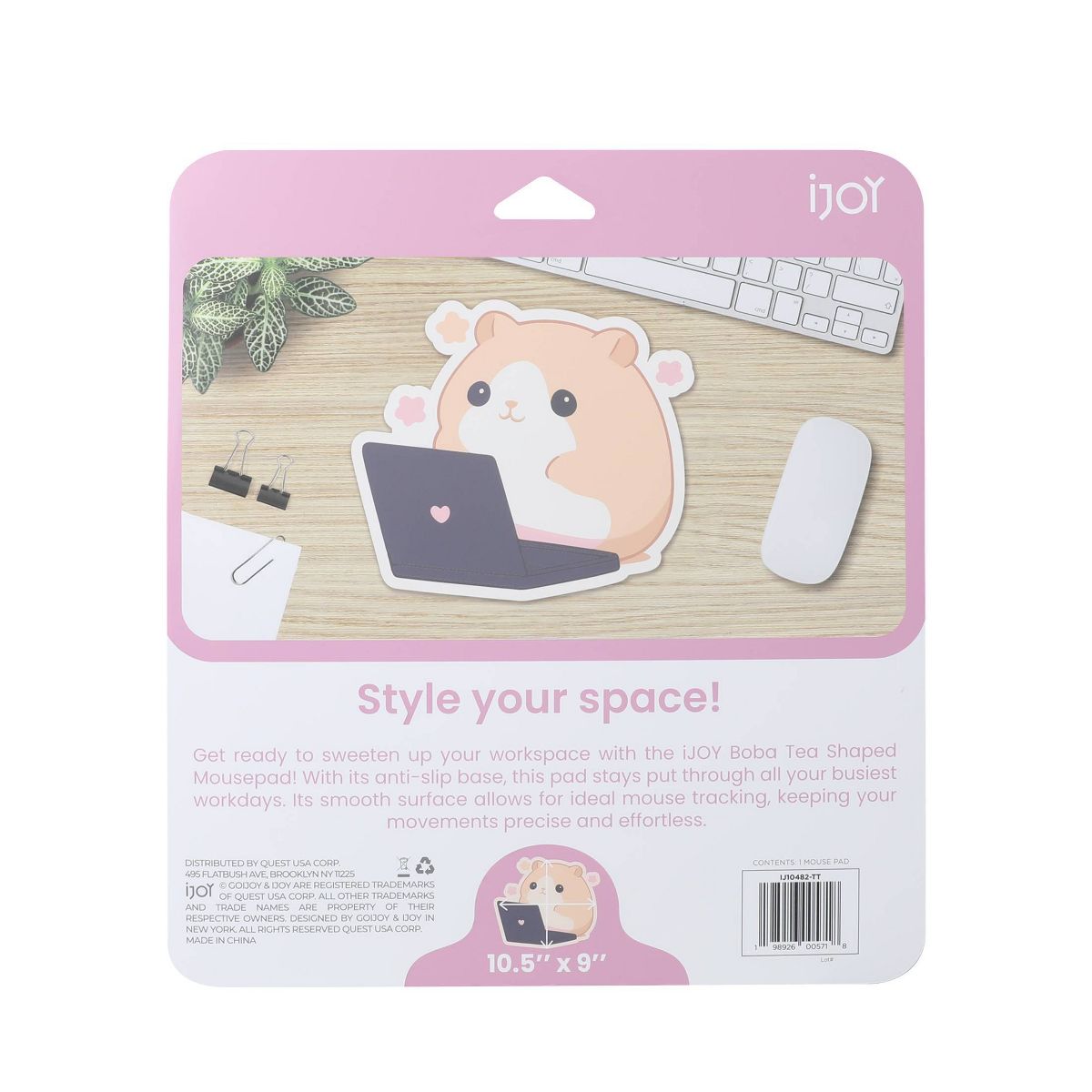 IJoy Fabric Mouse Pad - Hamster: Slim Design, Rubber Material, Brown & Pink