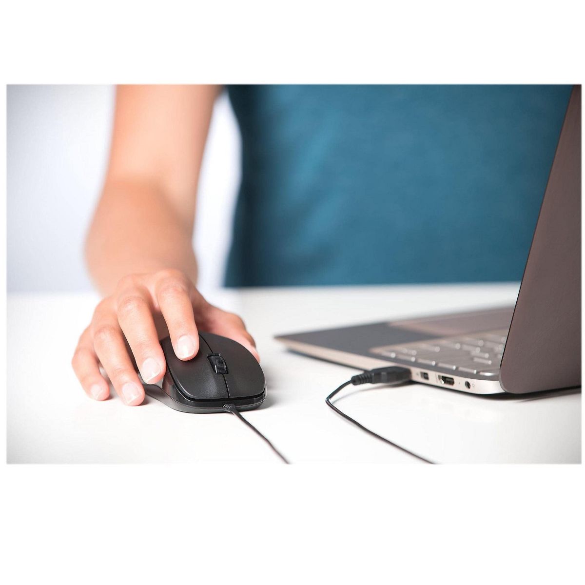 THE WIRED USB MOUSE FOR LIFE FEATURES A THREE-BUTTON/SCROLL WHEEL SETUP THAT OFF
