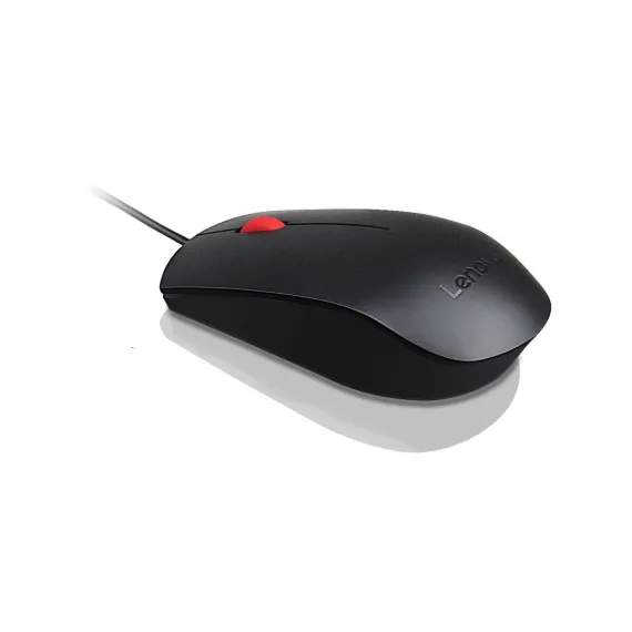 The Lenovo Essential USB Mouse is more than your basic mouse. It features an easy plug-and-play connection to PCs via a USB cable. This ergonomic full-size design provides a comfortable grip for all day comfort. A high-resolution, 1600 DPI optical sensor ensures you'll be gliding smoothly from window to window. Full-size mouse for better grip; Wired USB connection; High resolution of 1600 DPI; Ambidextrous design