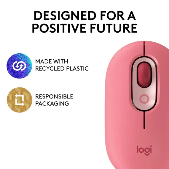 Let personality POP on your deskspace and beyond with POP Mouse, your whisper-quiet, wireless mouse with fresh customization features. Take your self-expression further and download Logitech Software to customize the top button. Give it your own twist by assigning it to send your favorite emoji or another shortcut - such as Snip Screen, Mic Mute or Voice-to-Text.