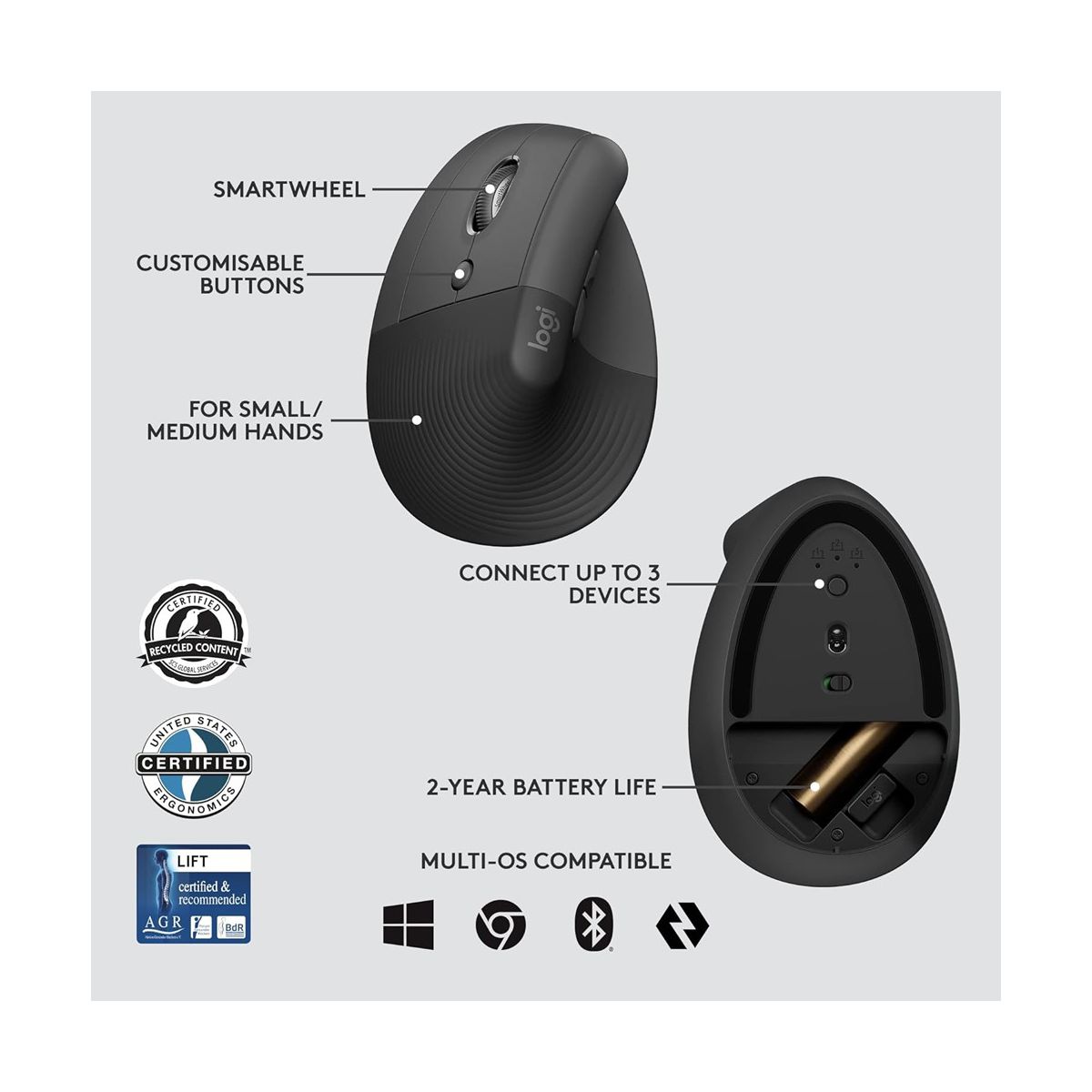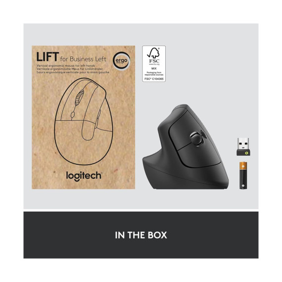 Logitech Lift for Business Left, Vertical Ergonomic Mouse - Left-Handed Wireless