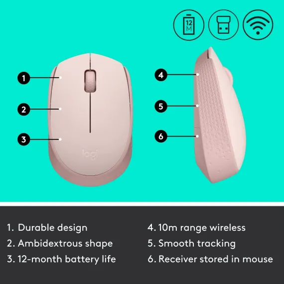 Logitech M170 Wireless Mouse 2.4GHz RF Rose 910006862