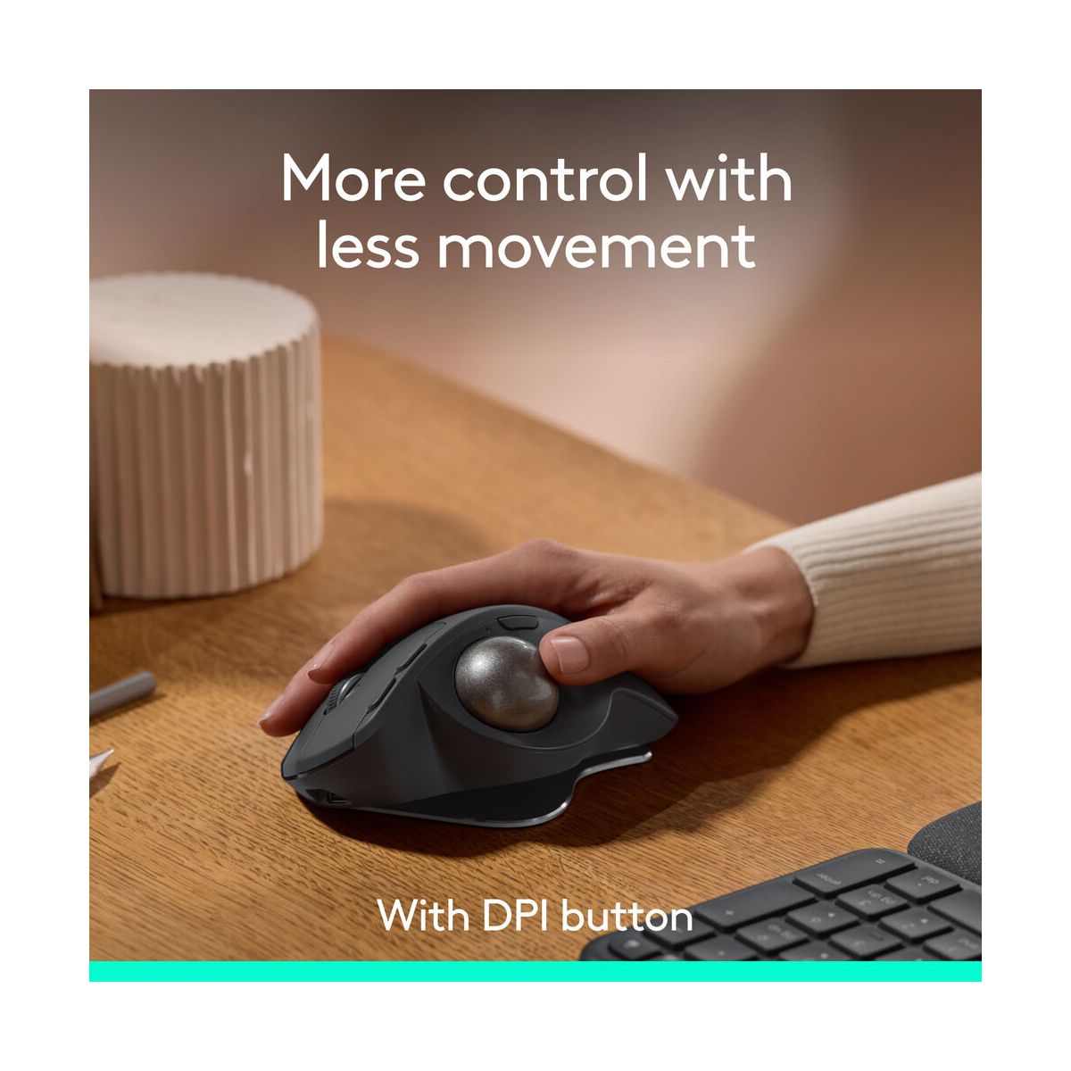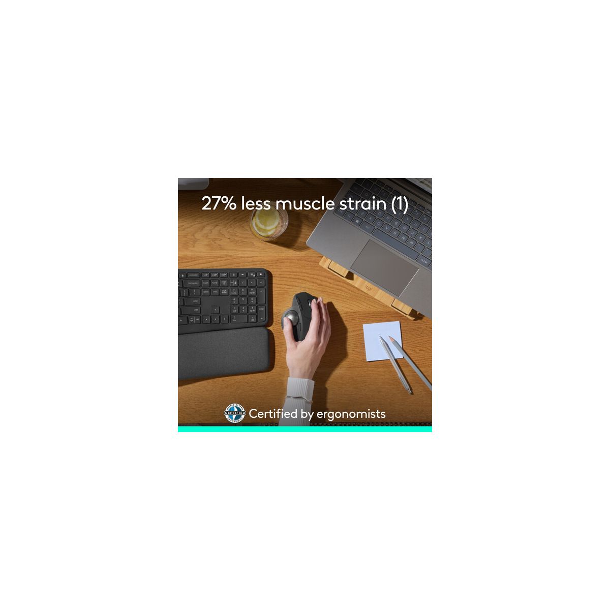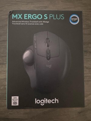 Experience MX Ergo S Plus advanced wireless trackball, user-tested and certified by United States Ergonomics, with a 20-degree tilt angle for 27% less muscle strain in your forearm and a detachable 10-degree wedge for even more comfort throughout your day. With no need to move the hand around to move the cursor, thumb control lets you work at peak performance and comfort while saving space on your desk. Equipped with quiet clicks, 6 customizable buttons with the Logi Options+ App, dual connectivity with the included Logi Bolt receiver, and fast USB-C charging to get 24h of use with a 1-min charge (cable not included).