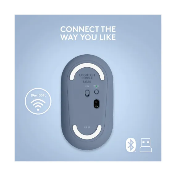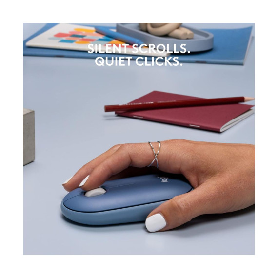 Logitech Pebble Mouse is a modern, slim, and silent mouse designed for your curated lifestyle. The pebble shape of this portable mouse feels great in your hand and is easy to scoop up and take with you. This optical mouse also offers optimal performance in a simple package with high-precision optical tracking and a wide rubber scroll wheel. 18-month battery life and dual connectivity (Bluetooth and 2.4GHz receiver) ensure a hassle-free user experience.