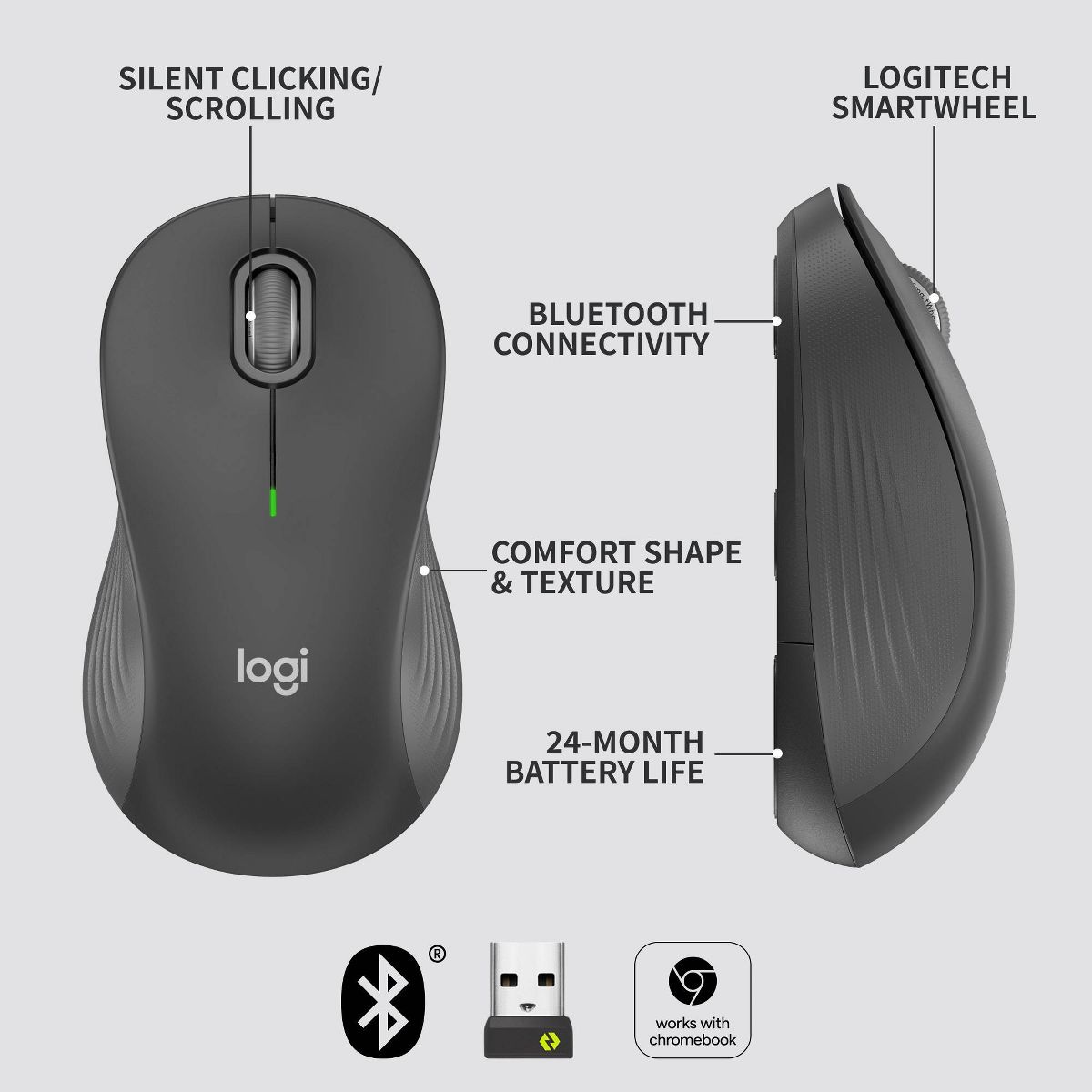 Logitech Signature M550 Wireless Mouse - Large - Graphite: Bluetooth & USB-A Connection