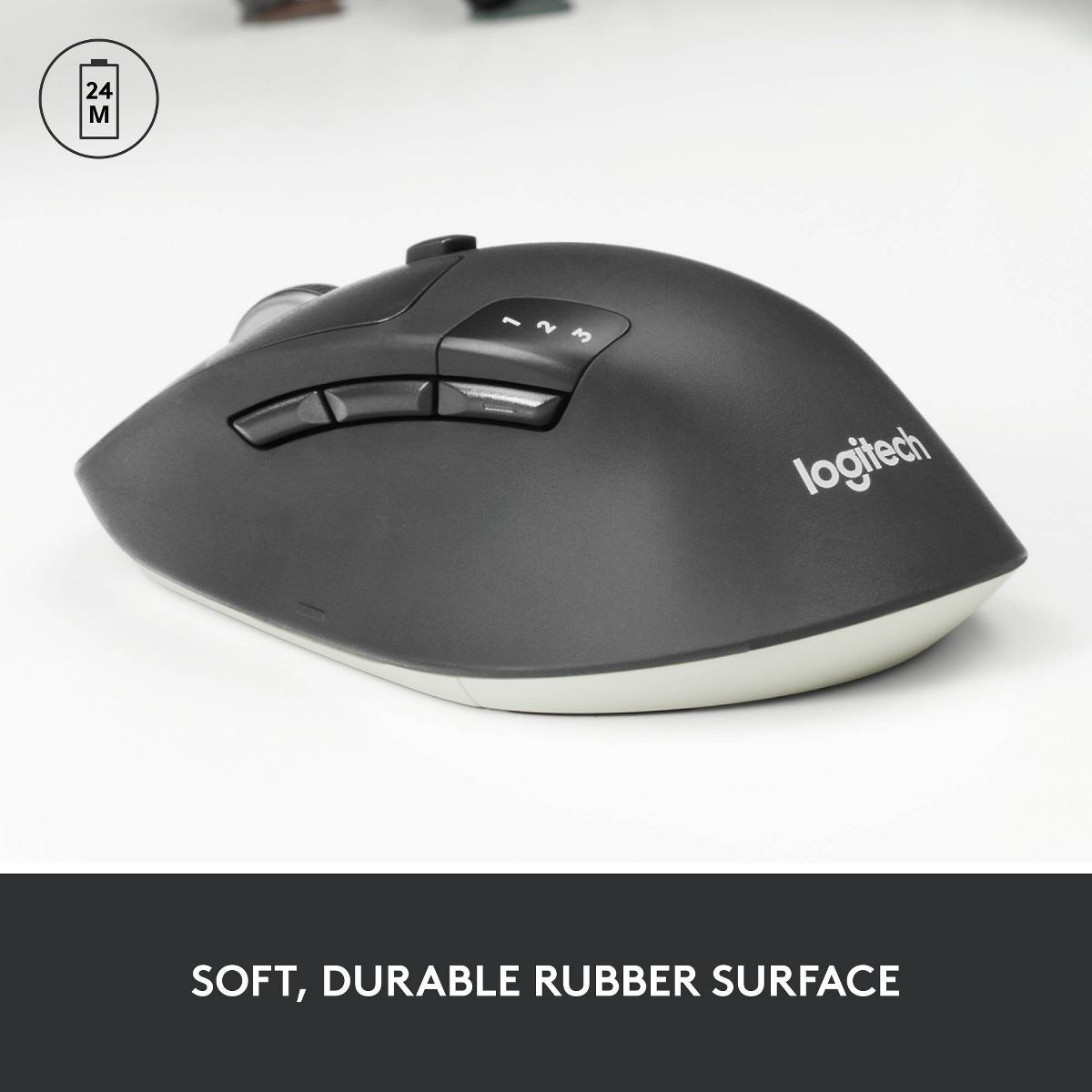 Built for endurance, versatility, and comfort, the Precision Mouse Pro helps you succeed in a multi-device world. You'll be powering through tasks thanks to the Easy-Switch technology that lets you switch seamlessly between 3 computers. You'll fly through documents and web pages using the hyper-fast scroll wheel, and hardly spare a thought to changing batteries thanks to 24 months of power on one AA battery. The large-sized sculpted shape fits comfortably under your hand, and the keys are designed to withstand up to 10 million clicks. You can connect to Windows® and Mac via the tiny Unifying™ receiver or via Bluetooth® Smart wireless technology.