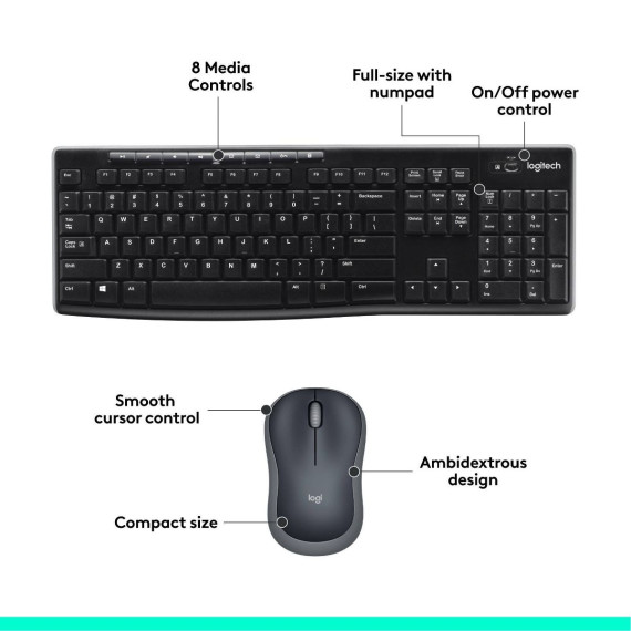 Logitech Wireless Keyboard and Mouse: USB-A Full Size, Mechanical Switch, Business Use