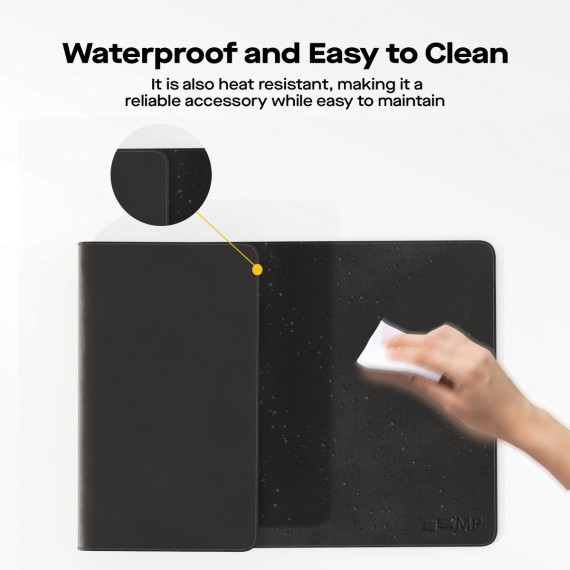 The Mobile Pixels 31.5-In. x 15.75-In. Desk Mat in Graphite Black is large enough to accommodate your laptop, mouse, and keyboard, with wide surface usage. The anti-scratch premium durable PU leather protects your desk from scratches, stains, spills, heat, and scuffs and it also gives your office a modern and professional atmosphere. It can be used as a mouse pad, keyboard pad, computer pad, and office desk pad all in one. Its smooth surface will make you enjoy writing, typing, and browsing. It is ideal for both office and home. The special nonslip design keeps the desk mat steady and adds stability during everyday use. The waterproof surface can prevent damage from spilled drinks or coffee. To clean it, simply wipe its surface with a wet cloth. Show your personal style, and make your desktop unique.