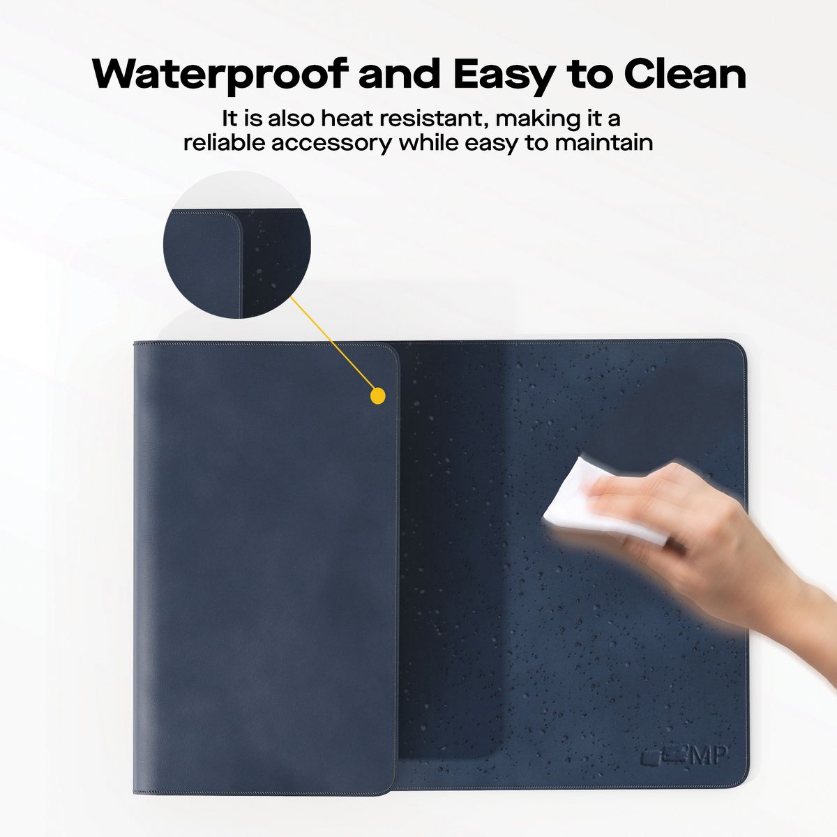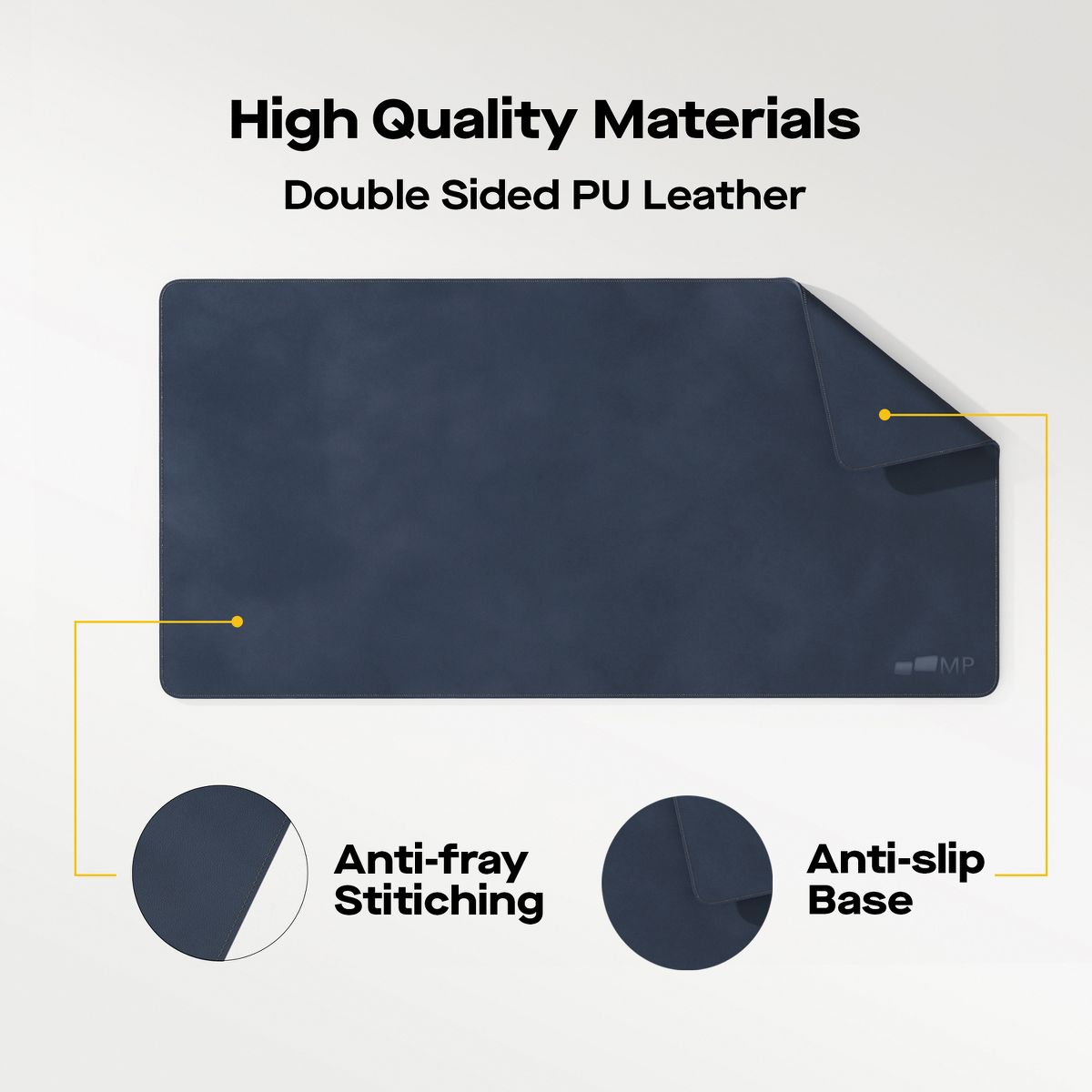 The Mobile Pixels 31.5-In. x 15.75-In. Desk Mat in Graphite Black is large enough to accommodate your laptop, mouse, and keyboard, with wide surface usage. The anti-scratch premium durable PU leather protects your desk from scratches, stains, spills, heat, and scuffs and it also gives your office a modern and professional atmosphere. It can be used as a mouse pad, keyboard pad, computer pad, and office desk pad all in one. Its smooth surface will make you enjoy writing, typing, and browsing. It is ideal for both office and home. The special nonslip design keeps the desk mat steady and adds stability during everyday use. The waterproof surface can prevent damage from spilled drinks or coffee. To clean it, simply wipe its surface with a wet cloth. Show your personal style, and make your desktop unique.