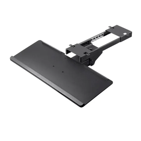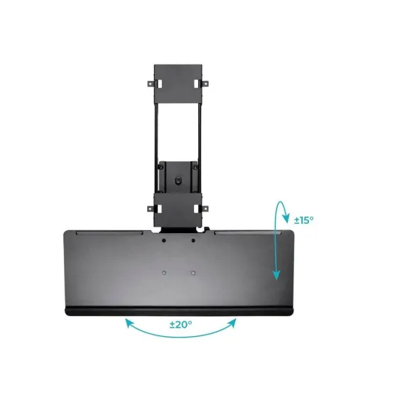This adjustable keyboard tray provides ergonomic adjustability for keyboard and mouse placement, helping to create a better-fitting workstation. This provides better posture and placement options for people who otherwise can't make adjustments to their desks and workstations. This mount allows users to modify the height, tilt angle, and swivel position of their typing surface to help create a more comfortable and more productive work environment.