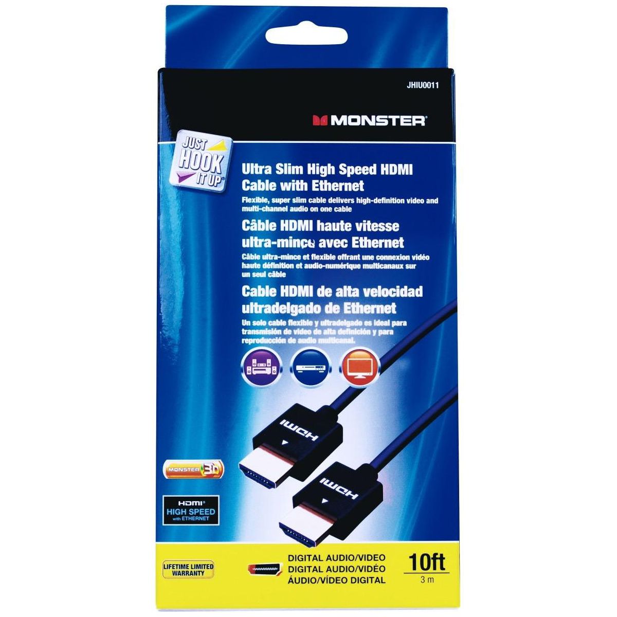 Monster JHIU0011 Just Hook It Up Ultra Slim High Speed HDMI Cable, 10'