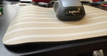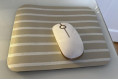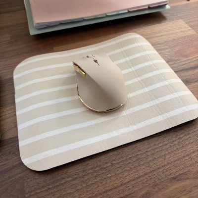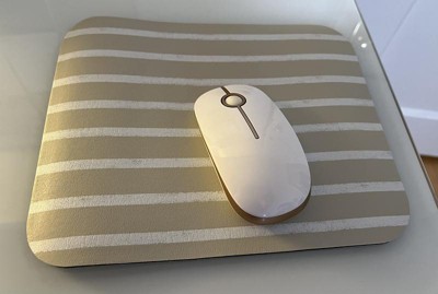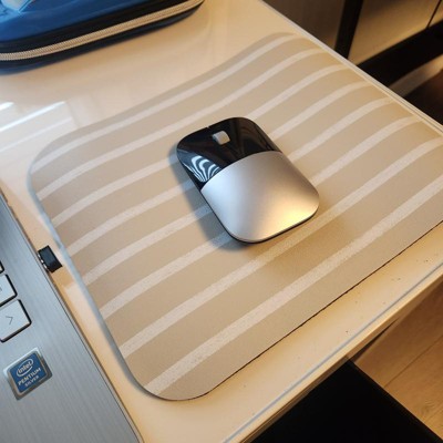 This is such a cute mouse pad and I love the light stripped pattern. It's a faux leather texture so it seems a bit sticky when moving my mouse over it, but it works well and seems to be pretty durable.