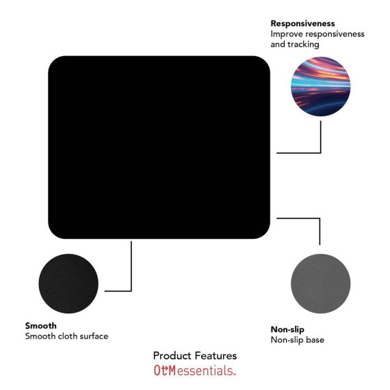 Made with a non-slip rubber base, our mouse pads stay in place without moving around your desk. All OTM Essentials products are made with quality materials & are backed by our 1 year warranty.