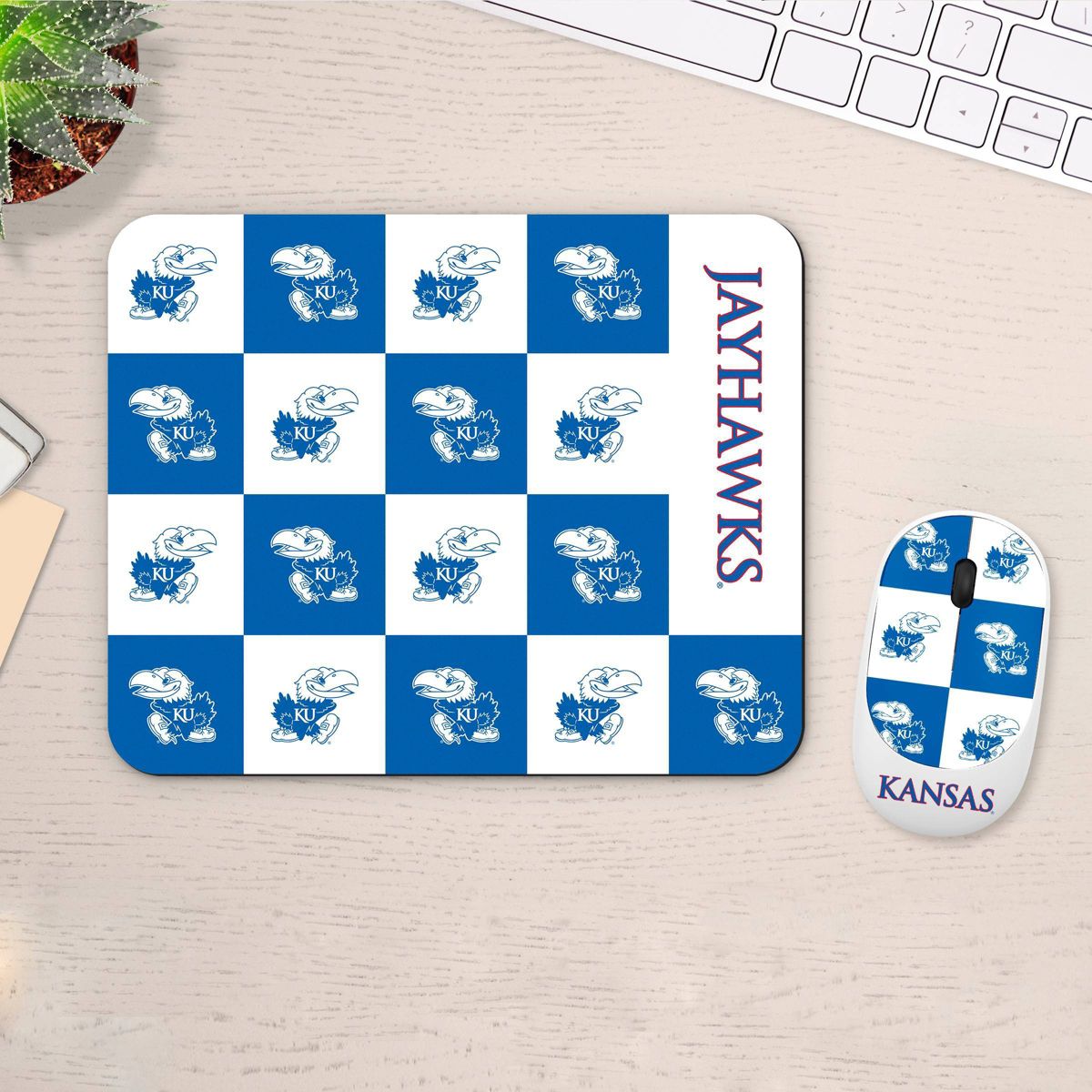 NCAA Kansas Jayhawks Mouse and Mousepad Set: USB-A Wireless Radio Frequency