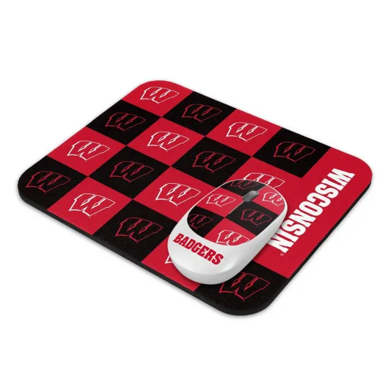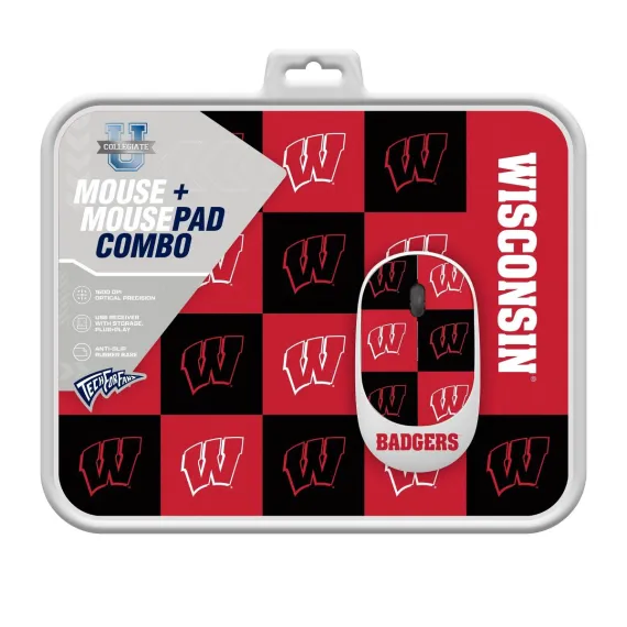NCAA Wisconsin Badgers Mouse and Mousepad Set: USB-A Wireless Radio Frequency