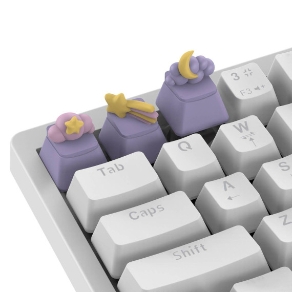 I absolutely adore these keycaps. The little whimsical shapes that adorn three of the keycaps are adorable and cute. The new keycaps maintain the clickety-clack sound that the original keys of the keyboard make. Overall, these keycaps transform my keyboard into something magical and pretty to look at!