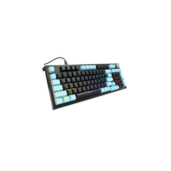 Crafted with a robust ABS top cover, this keyboard is built to withstand the rigors of daily use. The sleek black and blue design adds a touch of elegance to your gaming station, making it a standout piece in any setup. Its compact size (390x140.3x40 mm) ensures it fits comfortably on your desk without sacrificing functionality.
