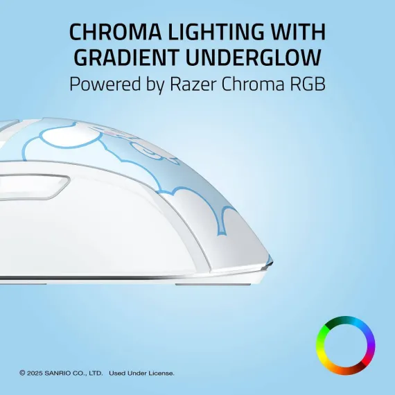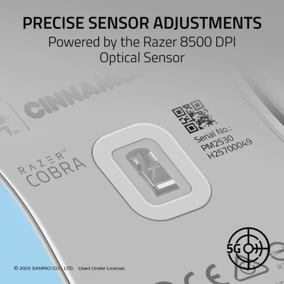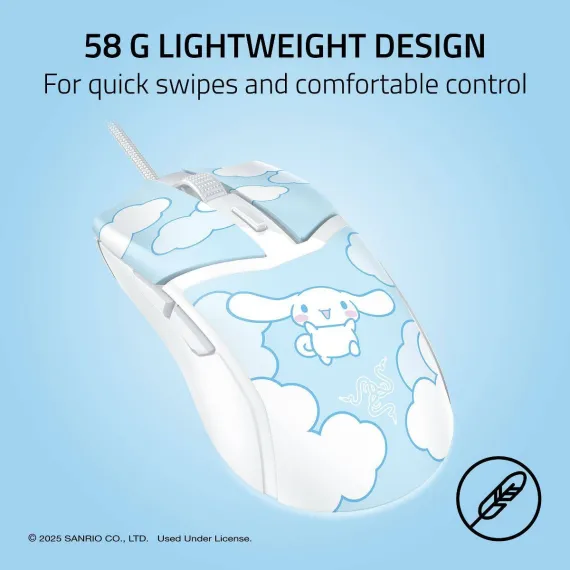Hit the mark for precision and immersion with the Razer Cobra Cinnamoroll Edition - a lightweight wired gaming mouse powered by Razer Chroma RGB. Armed with ultra durable switches and decked out with a gradient Chroma underglow, you'd never expect a mouse so small to pack such a big-game performance.